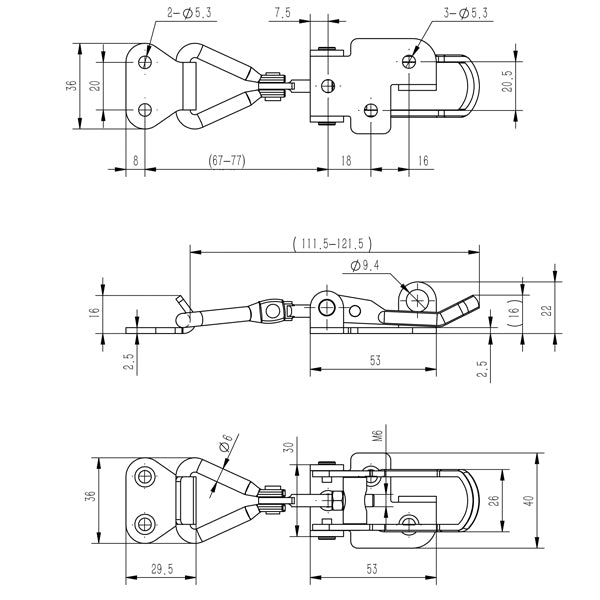 1852 Spændeoverfald med låsebeslag 125x40mm, AISI 316