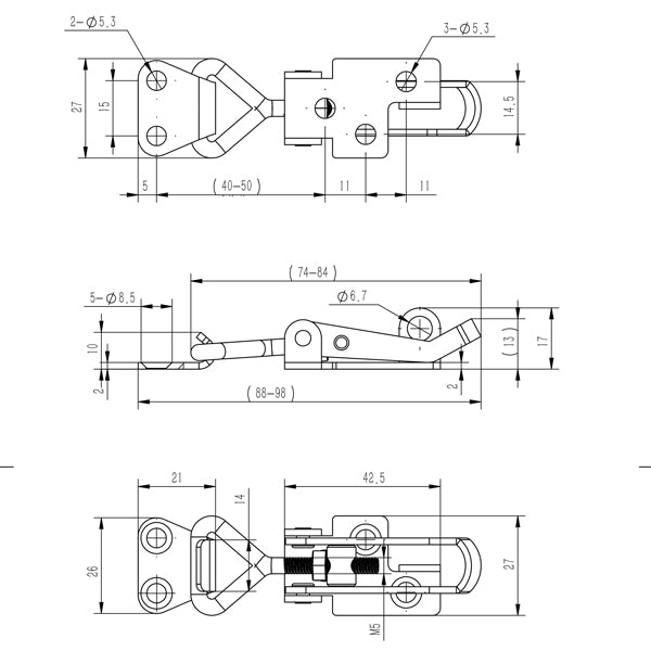 1852 Spændeoverfald med låsebeslag 76x26mm, AISI 316