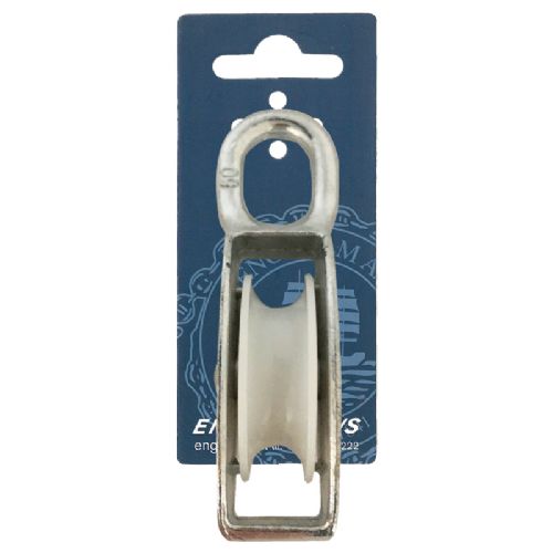 Alsidig 50 mm blok i galvaniseret stål med øje, 1-skivs model til 12 mm tov. Med en brudstyrke på 1200 kg er denne blok perfekt til mellemstore tovværksopgaver ombord.