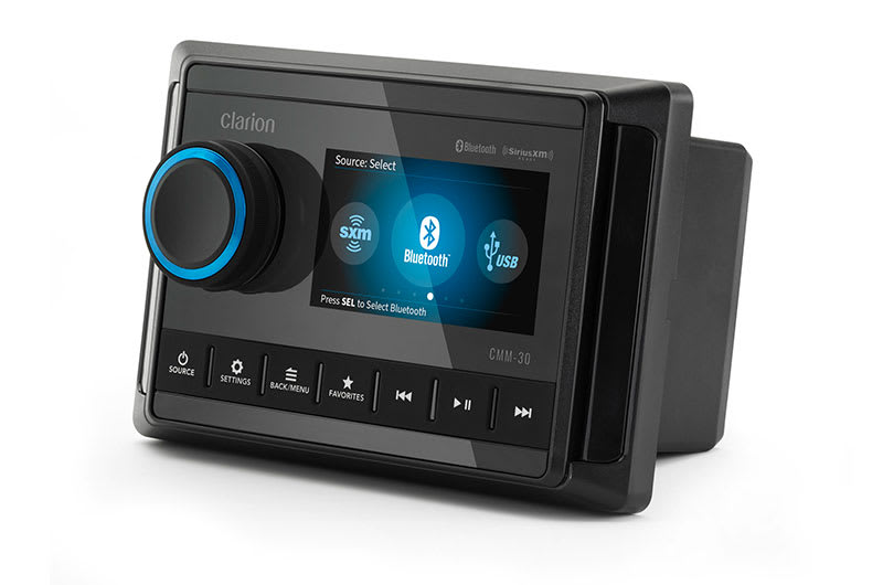 Garmin Clarion® CMM-30 er en avanceret marinekildeenhed med LCD-skærm til styring af dit marine lydsystem. Med Bluetooth, USB, AUX-indgang og DAB+ radio får du fuld kontrol over din musik på havet.