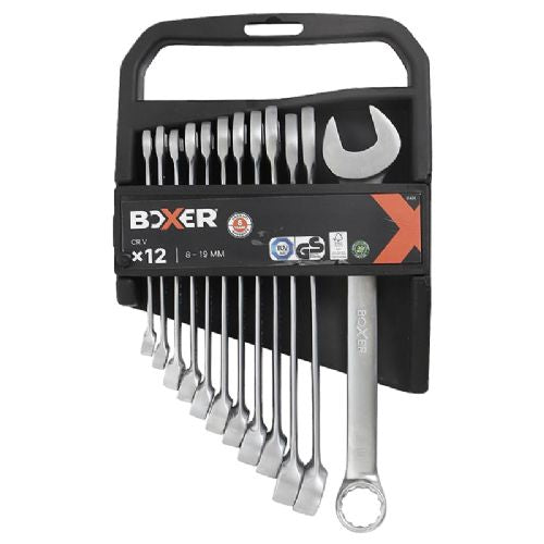 Ringgaffelnøglesæt 12 dele krom-vanadium Størrelser: 8-9-10-11-12-13-14-15-16-17-18-19 mm