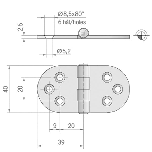 Roca hængsel 78x40mm AISI 316