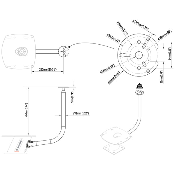 Den centrale stang passer til PowerTower ved hjælp af en forboret, internt monteret 316 rustfri bagplade. Maling er i overensstemmelse med Scanstrut unikke 4-trins marine malingssystem. Intern kabelføring inde i PowerTower. Passer til et bredt udvalg af lanterner