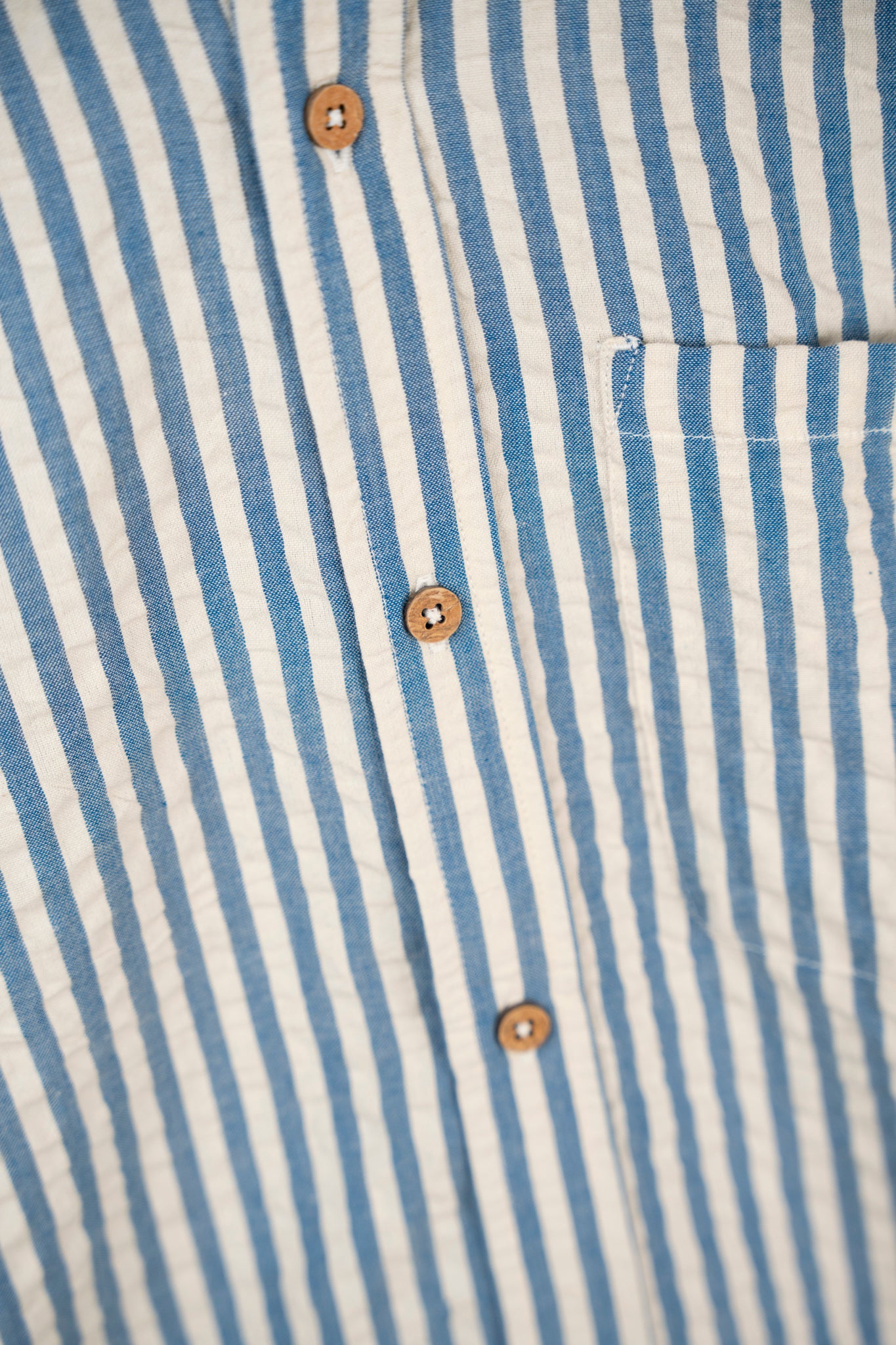 Seer Sucker skjorten føles som at svøbe sig i en lun sommeraften. Inspireret af den sagnomspundne bæk og bølge-kvalitet, der i generationer har prydet soverum i sommerhuse landet over, er den skabt til dage, hvor tempoet er skruet ned til slowmotion.