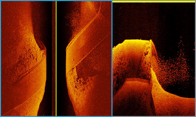 Se den fantastiske forskel i klarhed mellem standard scanning sonar til venstre og Ultra High-Definition ClearVü scanning sonar til højre.