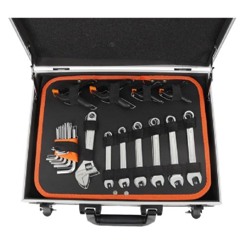 Komplet værktøjskuffert med 107 dele til alle almindelige reparations- og vedligeholdelsesopgaver ombord. Alt det værktøj du har brug for samlet i én praktisk kuffert - perfekt til både professionelle og fritidssejlere.